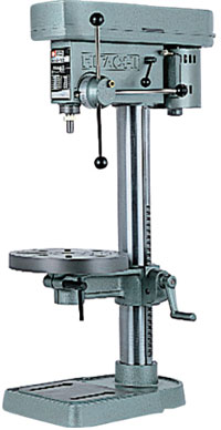 | ↓卓上ボール盤 最大加工能力 鉄工:6.5mm 単相100V 出力:200W テーブル:角 ドリルチャック別売 |