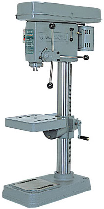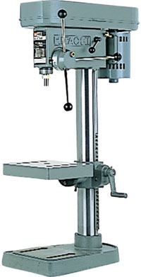 | ↓卓上ボール盤 最大加工能力 鉄工:13mm 単相100V/三相200V 出力:200W テーブル:丸 ドリルチャック別売 |