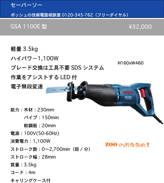 ボッシュの電動工具 セーバーソー GSA 900型!ブレード交換は工具不要!!